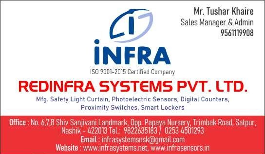 Being an ISO 9001:2015 certified company, we Infra Systems, manufactures varieties of Process And Automation Control Instruments. These have wide application in non-contact sensing, switching and controlling various automatic processes, safety & security applications, and to improve product quality and production.The Company has been established in the year 2004 by Mr Nishant Koli, the Managing Director of the company. In the beginning, the company started with manufacturing a few models of sensors, proximity switches, light curtains, etc. and now presently manufacturing a very wide range of products to suit various applications. Our products include Electric Sensors, Proximity Switches, Safety Light Curtains, Digital Counters, Digital Timers, Building Automation Products, etc.